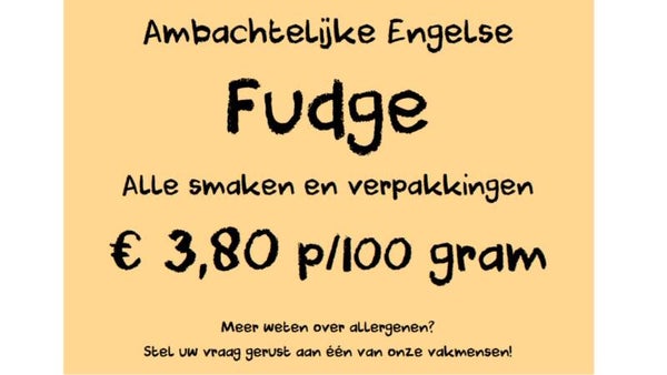 Prijskaart € 3,80 p/100 gram
